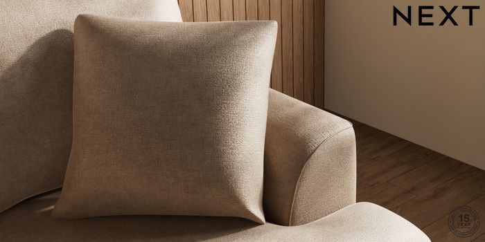 7.2.10 Buy Parker 2 Seater Small Sofa Luxe Chenille Mid Camel Beige Low Retro Tapered - Light from the Next UK online shop Click here to use our accessible website