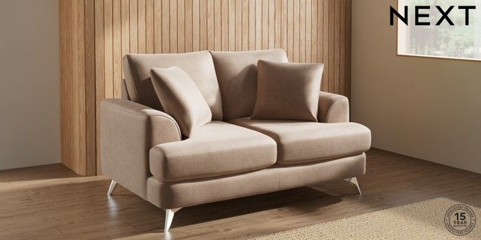 7.2.10 Buy Parker 2 Seater Small Sofa Luxe Chenille Mid Natural High Metal - Chrome from the Next UK online shop Click here to use our accessible website