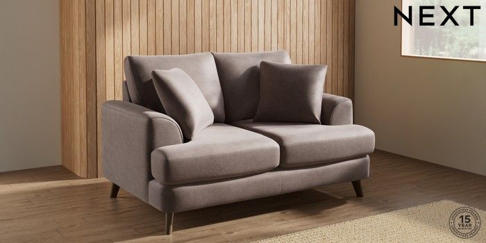 7.2.10 Buy Parker 2 Seater Small Sofa Luxe Chenille Mink Brown Low Retro Tapered - Mid from the Next UK online shop Click here to use our accessible website