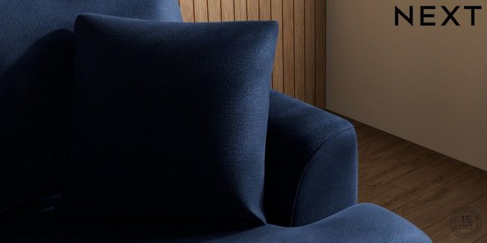 7.2.10 Buy Parker 2 Seater Small Sofa Luxe Chenille Navy Blue Low Retro Tapered - Dark from the Next UK online shop Click here to use our accessible website