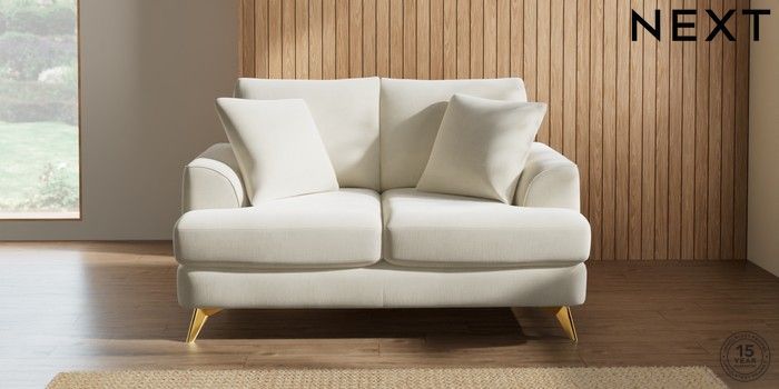 7.0.3 Buy Parker 2 Seater Small Sofa Luxe Chenille Oyster High Metal - Brass from the Next UK online shop Click here to use our accessible website
