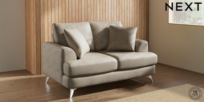 7.3.1 Buy Parker 2 Seater Small Sofa Monza Faux Leather Easy Clean Mink Brown High Metal - Chrome from the Next UK online shop Click here to use our accessible website