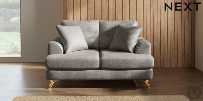 7.2.5 Buy Parker 2 Seater Small Sofa Plush Chenille Light Grey High Metal - Brass from the Next UK online shop Click here to use our accessible website