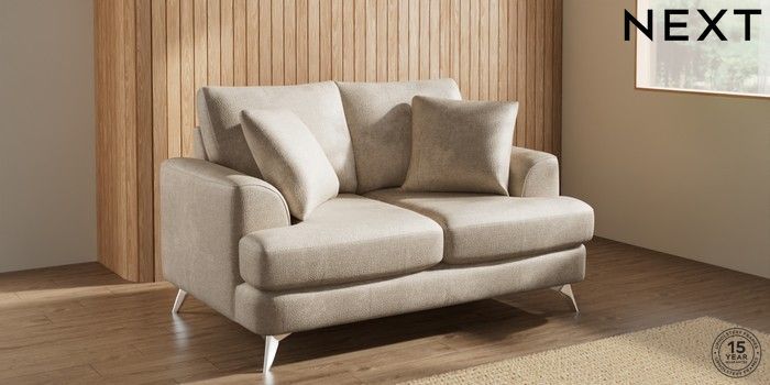 7.0.3 Buy Parker 2 Seater Small Sofa Plush Chenille Light Natural High Metal - Chrome from the Next UK online shop Click here to use our accessible website