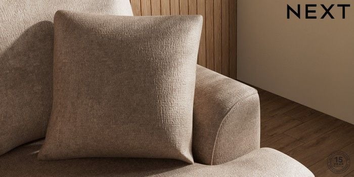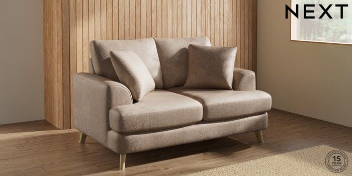 7.3.1 Buy Parker 2 Seater Small Sofa Plush Chenille Mid Natural Low Retro Tapered - Light from the Next UK online shop Click here to use our accessible website