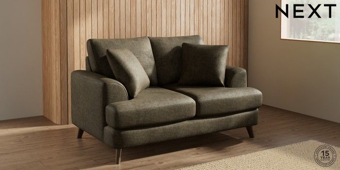 7.2.10 Buy Parker 2 Seater Small Sofa Plush Chenille Moss Green Low Retro Tapered - Mid from the Next UK online shop Click here to use our accessible website