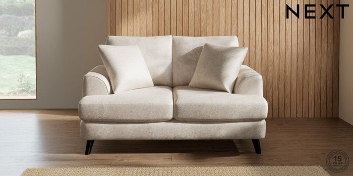 7.2.6 Buy Parker 2 Seater Small Sofa Plush Chenille Oyster Low Retro Tapered - Dark from the Next UK online shop Click here to use our accessible website