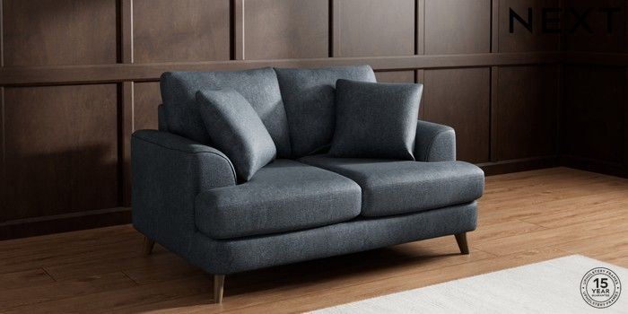 7.3.1 Buy Parker 2 Seater Small Sofa Plush Chenille Slate Blue Low Retro Tapered - Mid from the Next UK online shop Click here to use our accessible website