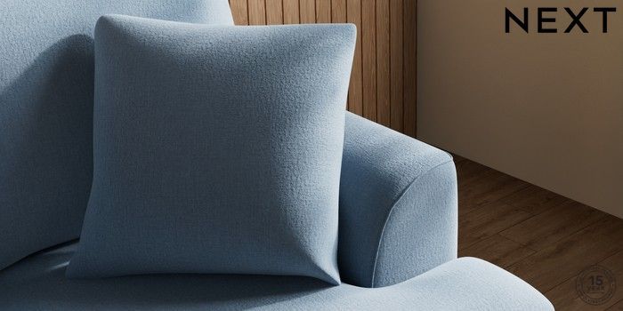 7.3.1 Buy Parker 2 Seater Small Sofa Relaxed Linen Look Mid Blue High Metal - Brass from the Next UK online shop Click here to use our accessible website