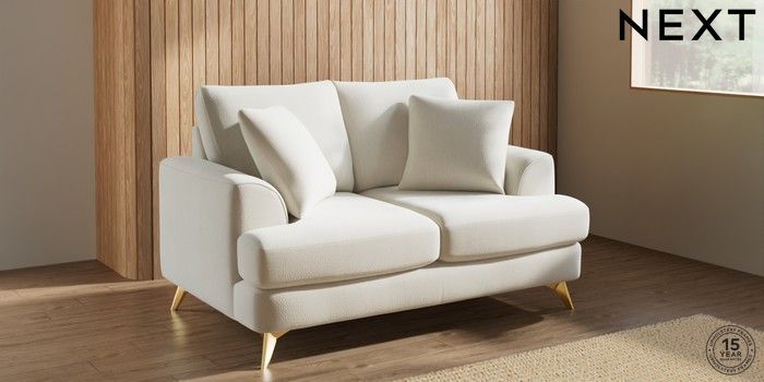 7.3.1 Buy Parker 2 Seater Small Sofa Relaxed Linen Look Oyster High Metal - Brass from the Next UK online shop Click here to use our accessible website