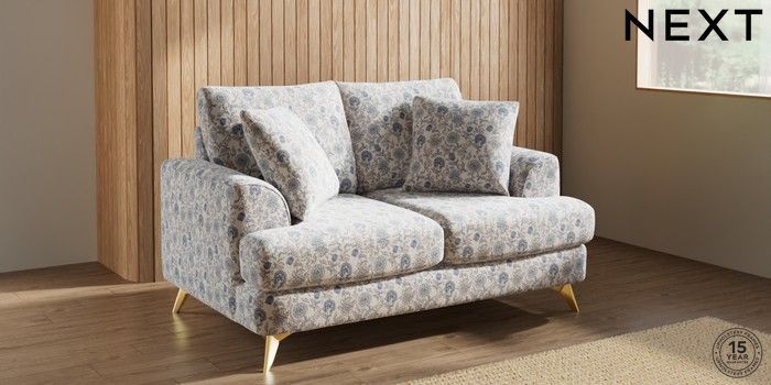 7.3.1 Buy Parker 2 Seater Small Sofa Relaxed Linen Look Print Woodblock Floral Blue High Metal - Brass from the Next UK online shop