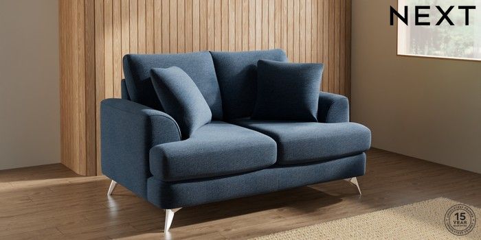 7.0.3 Buy Parker 2 Seater Small Sofa Ripple Chenille Dark Blue High Metal - Chrome from the Next UK online shop Click here to use our accessible website