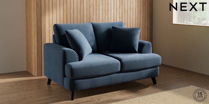 7.0.3 Buy Parker 2 Seater Small Sofa Ripple Chenille Dark Blue Low Retro Tapered - Dark from the Next UK online shop Click here to use our accessible website