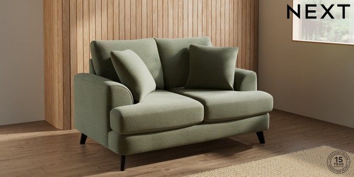 7.2.10 Buy Parker 2 Seater Small Sofa Ripple Chenille Mid Moss Green Low Retro Tapered - Dark from the Next UK online shop Click here to use our accessible website