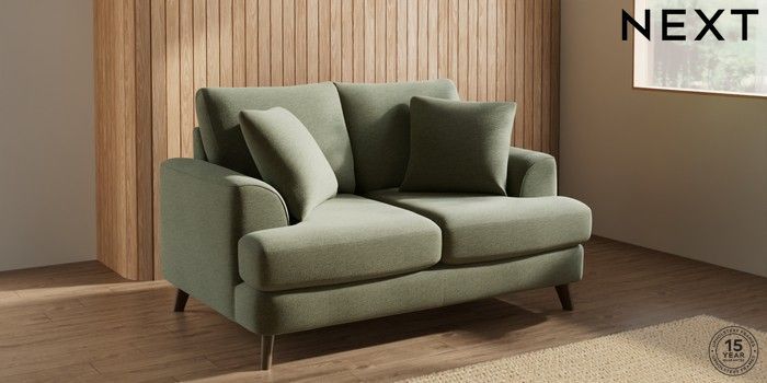 7.2.10 Buy Parker 2 Seater Small Sofa Ripple Chenille Mid Moss Green Low Retro Tapered - Mid from the Next UK online shop Click here to use our accessible website