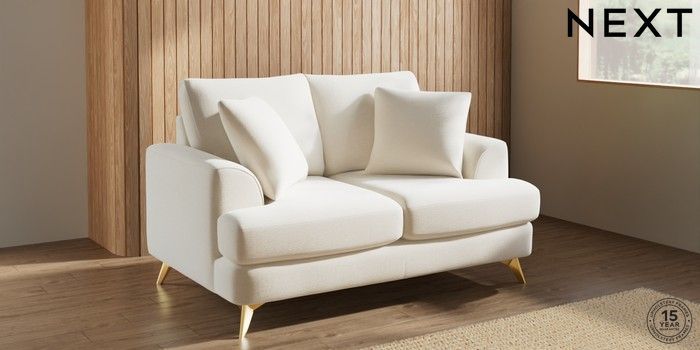 7.2.10 Buy Parker 2 Seater Small Sofa Ripple Chenille Oyster High Metal - Brass from the Next UK online shop Click here to use our accessible website