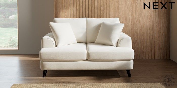 7.2.5 Buy Parker 2 Seater Small Sofa Ripple Chenille Oyster Low Retro Tapered - Dark from the Next UK online shop Click here to use our accessible website
