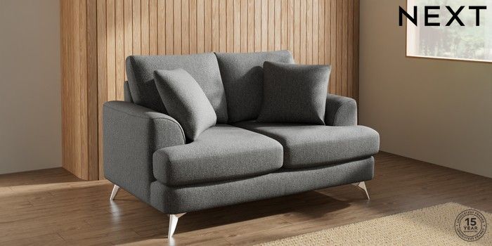 7.2.10 Buy Parker 2 Seater Small Sofa Tweedy Chenille Dark Grey High Metal - Chrome from the Next UK online shop Click here to use our accessible website