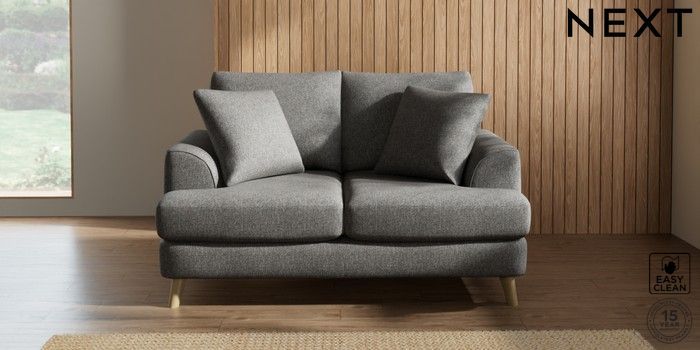 7.2.5 Buy Parker 2 Seater Small Sofa Tweedy Blend Easy Clean Dark Grey Low Retro Tapered - Light from the Next UK online shop Click here to use our accessible website