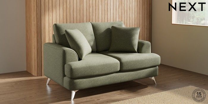 7.3.1 Buy Parker 2 Seater Small Sofa Tweedy Chenille Mid Moss Green High Metal - Chrome from the Next UK online shop Click here to use our accessible website