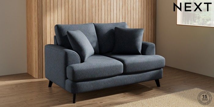 7.3.1 Buy Parker 2 Seater Small Sofa Tweedy Chenille Navy Blue Low Retro Tapered - Dark from the Next UK online shop Click here to use our accessible website