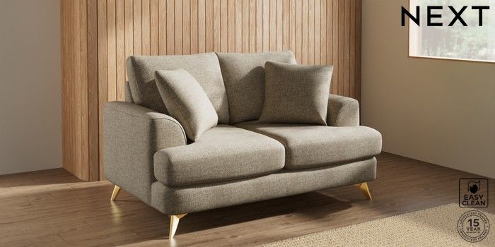7.3.1 Buy Parker 2 Seater Small Sofa Woven Chenille Easy Clean Mid Natural High Metal - Brass from the Next UK online shop Click here to use our accessible website