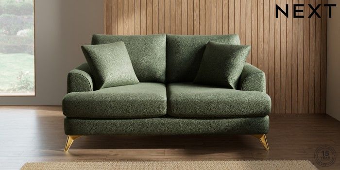 7.2.5 Buy Parker 3 Seater Small Sofa Boucle Chenille Dark Moss Green High Metal - Brass from the Next UK online shop Click here to use our accessible website