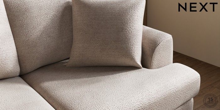 7.2.10 Buy Parker 3 Seater Small Sofa Boucle Chenille Light Natural High Metal - Brass from the Next UK online shop Click here to use our accessible website