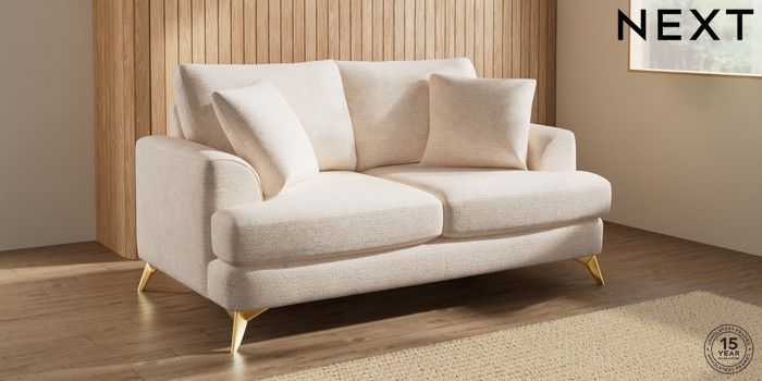 7.2.10 Buy Parker 3 Seater Small Sofa Boucle Chenille Oyster High Metal - Brass from the Next UK online shop Click here to use our accessible website