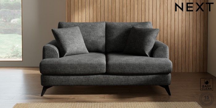 7.2.5 Buy Parker 3 Seater Small Sofa Boucle Weave Easy Clean Charcoal Grey High Metal - Black from the Next UK online shop Click here to use our accessible website