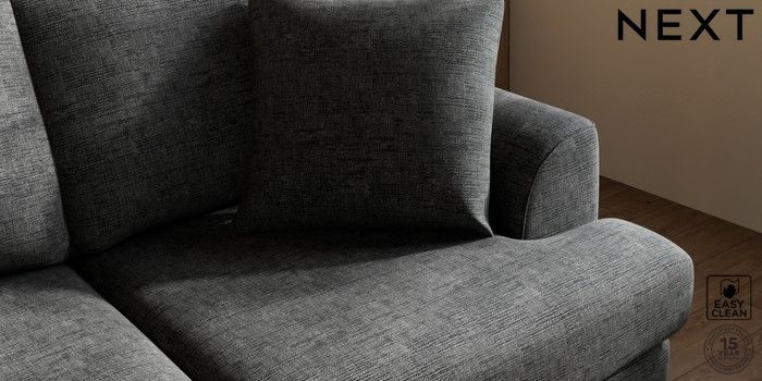 7.3.1 Buy Parker 3 Seater Small Sofa Boucle Weave Easy Clean Charcoal Grey High Metal - Brass from the Next UK online shop Click here to use our accessible website
