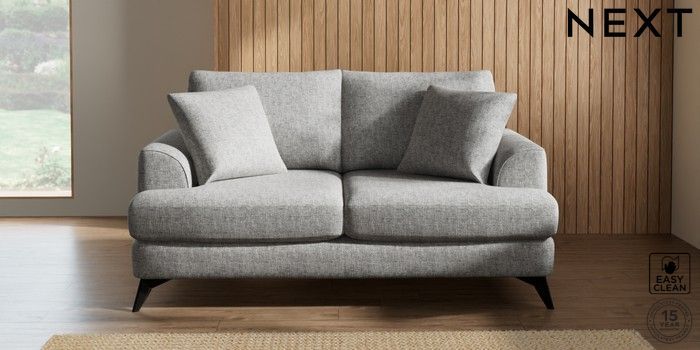 7.2.5 Buy Parker 3 Seater Small Sofa Chunky Boucle Easy Clean Light Grey High Metal - Black from the Next UK online shop Click here to use our accessible website