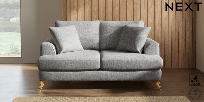 7.2.5 Buy Parker 3 Seater Small Sofa Chunky Boucle Easy Clean Light Grey High Metal - Brass from the Next UK online shop Click here to use our accessible website