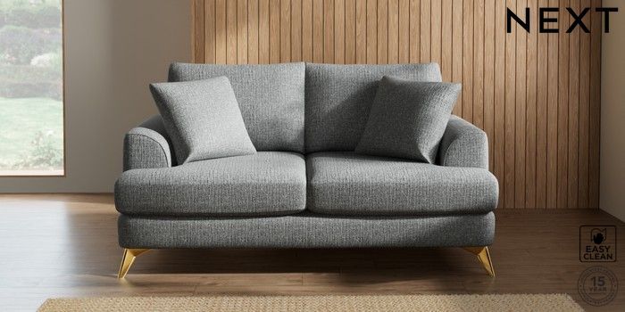 7.2.5 Buy Parker 3 Seater Small Sofa Chunky Boucle Easy Clean Mid Grey High Metal - Brass from the Next UK online shop Click here to use our accessible website