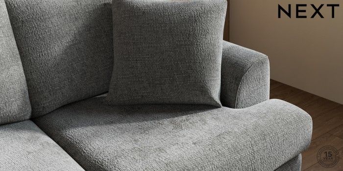 7.2.10 Buy Parker 3 Seater Small Sofa Chunky Chenille Dark Grey Low Retro Tapered - Light from the Next UK online shop Click here to use our accessible website