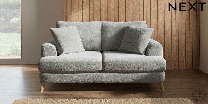 7.2.5 Buy Parker 3 Seater Small Sofa Chunky Chenille Light Grey Low Retro Tapered - Light from the Next UK online shop Click here to use our accessible website