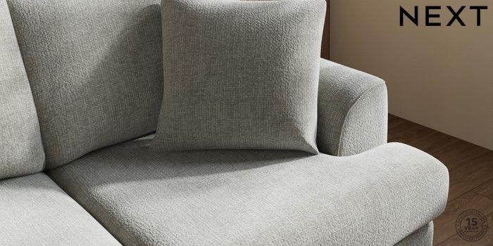 7.2.10 Buy Parker 3 Seater Small Sofa Chunky Chenille Light Grey Low Retro Tapered - Mid from the Next UK online shop Click here to use our accessible website