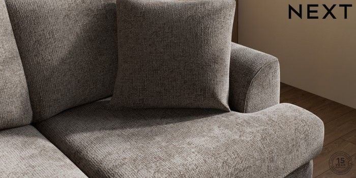 7.2.10 Buy Parker 3 Seater Small Sofa Chunky Chenille Mink Brown Low Retro Tapered - Light from the Next UK online shop Click here to use our accessible website
