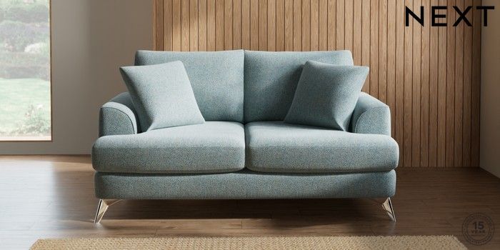 7.2.5 Buy Parker 3 Seater Small Sofa Chunky Marl Mid Blue High Metal - Chrome from the Next UK online shop Click here to use our accessible website