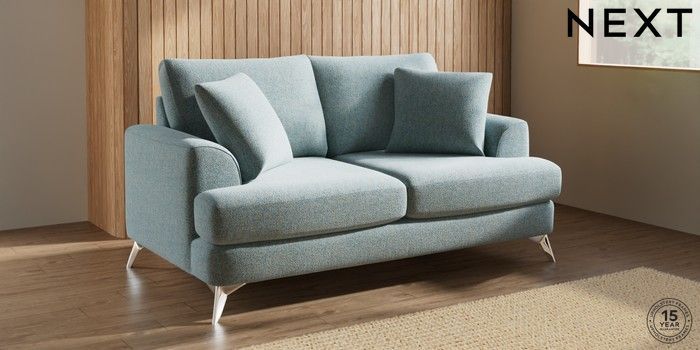 7.2.10 Buy Parker 3 Seater Small Sofa Chunky Marl Mid Blue High Metal - Chrome from the Next UK online shop Click here to use our accessible website
