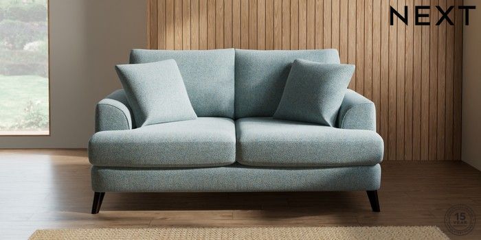 7.2.5 Buy Parker 3 Seater Small Sofa Chunky Marl Mid Blue Low Retro Tapered - Dark from the Next UK online shop Click here to use our accessible website