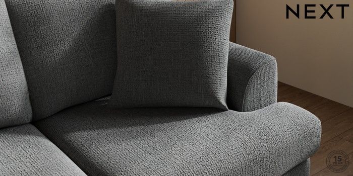7.2.10 Buy Parker 3 Seater Small Sofa Chunky Texture Dark Grey Low Retro Tapered - Dark from the Next UK online shop Click here to use our accessible website