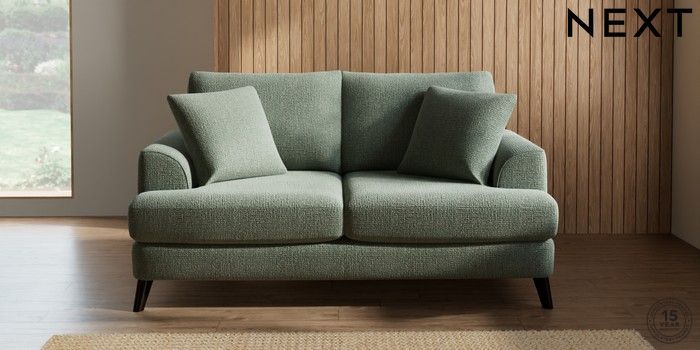 7.2.5 Buy Parker 3 Seater Small Sofa Chunky Texture Mid Forest Green Low Retro Tapered - Dark from the Next UK online shop Click here to use our accessible website