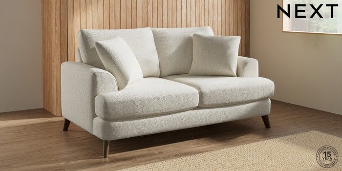 7.2.10 Buy Parker 3 Seater Small Sofa Chunky Texture Oyster Low Retro Tapered - Mid from the Next UK online shop Click here to use our accessible website