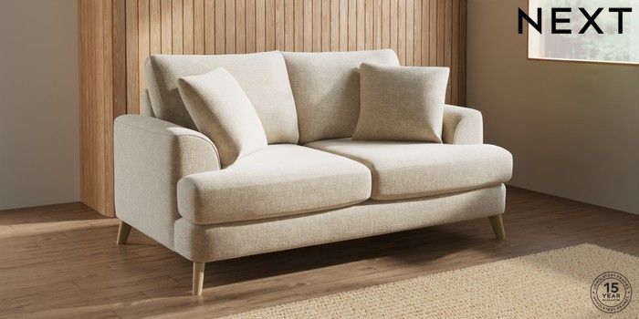 7.2.10 Buy Parker 3 Seater Small Sofa Chunky Weave Cream Low Retro Tapered - Light from the Next UK online shop Click here to use our accessible website