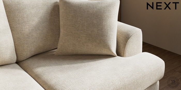 7.2.10 Buy Parker 3 Seater Small Sofa Chunky Weave Cream Low Retro Tapered - Mid from the Next UK online shop Click here to use our accessible website