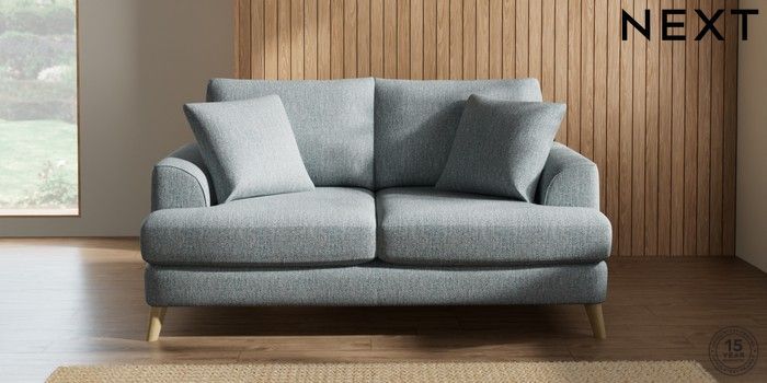 7.2.6 Buy Parker 3 Seater Small Sofa Chunky Weave Mid Blue Low Retro Tapered - Light from the Next UK online shop Click here to use our accessible website