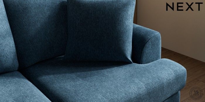 7.2.10 Buy Parker 3 Seater Small Sofa Cotswold Chenille Dark Blue High Metal - Black from the Next UK online shop Click here to use our accessible website