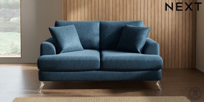 7.2.5 Buy Parker 3 Seater Small Sofa Cotswold Chenille Dark Blue High Metal - Chrome from the Next UK online shop Click here to use our accessible website