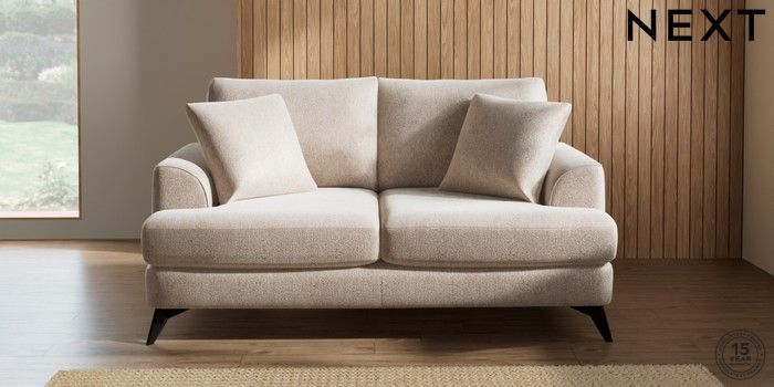 7.2.5 Buy Parker 3 Seater Small Sofa Cotswold Chenille Light Natural High Metal - Black from the Next UK online shop Click here to use our accessible website